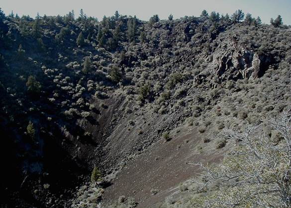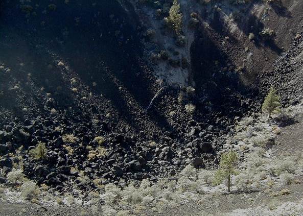 Looking down into Mammoth Crater's vent. The loose igneous debris is