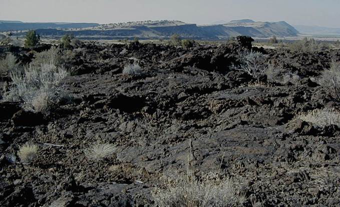 in the 3.3 ky Black Crater Flow. The cliff-like ridge in the distant