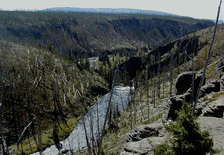 Yellowstone fires of 1988. Despite the magnificent canyon, the landscape