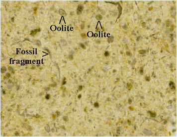 Jerusalem Limestone (field of view ~5.0 cm across) - a fossiliferous oolitic