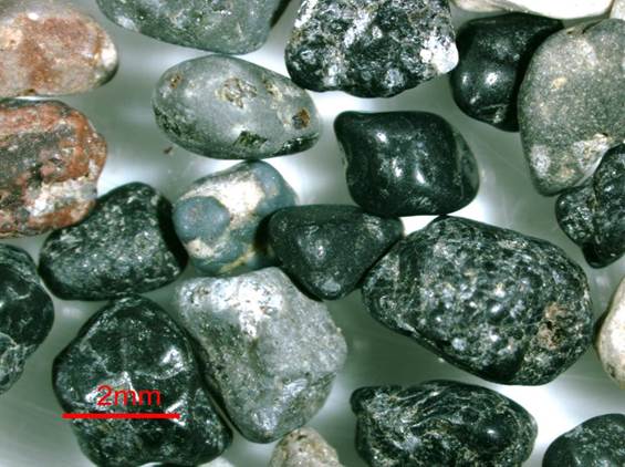 volcanic rock fragments. The grain rounding is the result of abrasion by