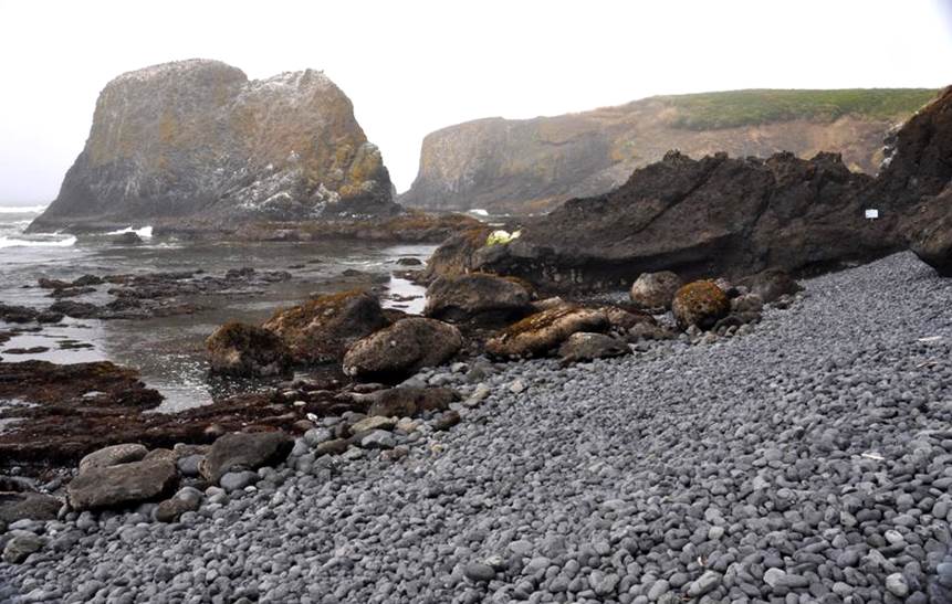 has produced a spectacular cobble beach at Yaquina Head. Finer sediments have been winnowed away, and
