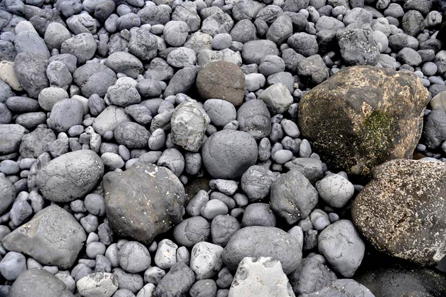basalt cobble beach - the cobbles are dominantly subrounded in shape and have