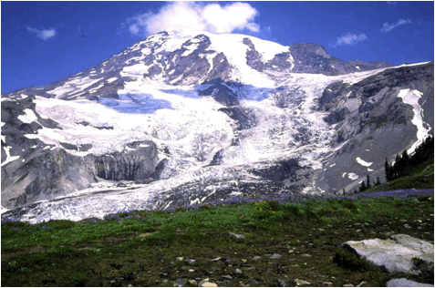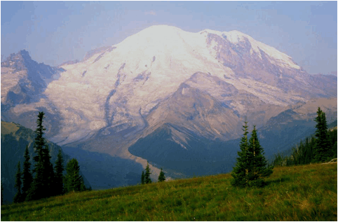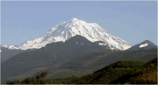 Mt. Rainier, a subduction zone stratovolcano, part of the Cascade Range of
