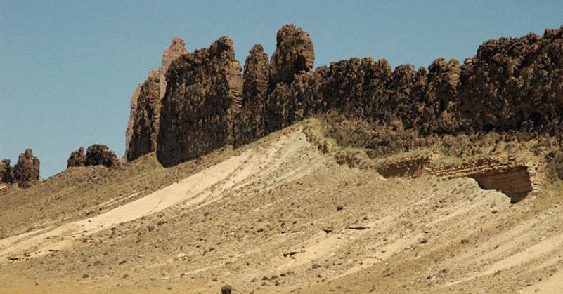 up much of Ship Rock and the surrounding dikes. This exposure is from the
