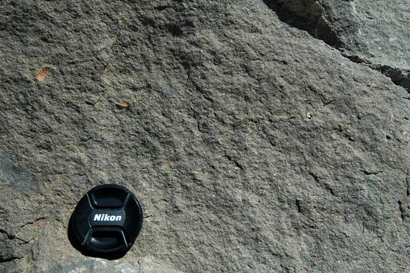 southern dike (looking ~N), composed of dark-colored, finely-crystalline