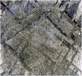 criss-crossing pattern of silvery-gray blades. This is called WidmanstŠtten