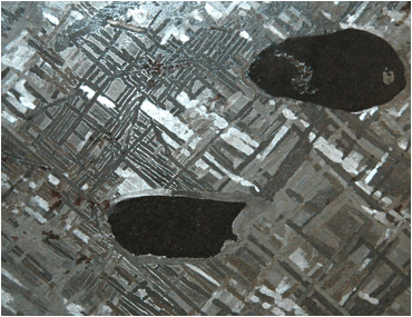 acid-etched surfaces (see below). Upon cooling from magma, the kamacite