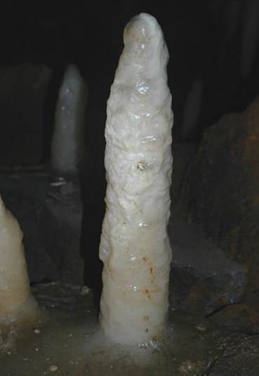 precipitation. A small calcite protrusion is now present on a cave wall.
