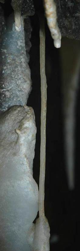 stalactites. Ohio Caverns has some well developed soda straws, although