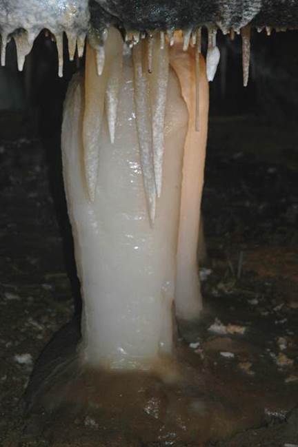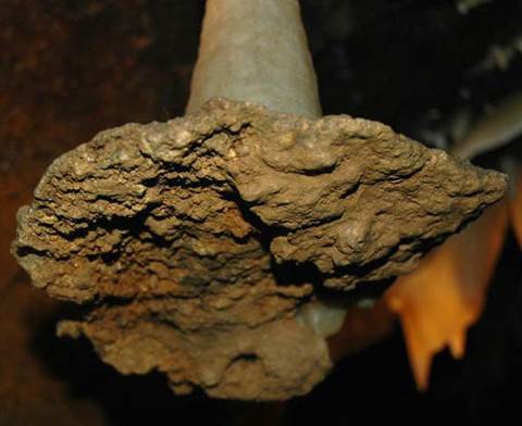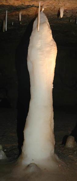 (i.e., large/long stalactite on the ceiling with a small stalagmite on the