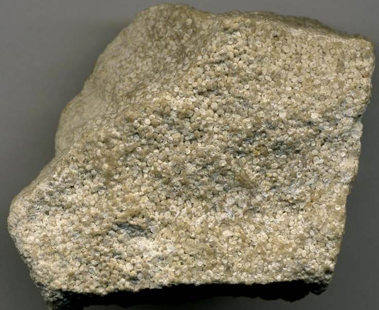 Oolitic limestones are whitish to cream-colored limestones composed of sand-sized