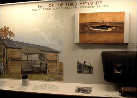 Benld Meteorite (above & below) - in 1938, a car in a garage was
