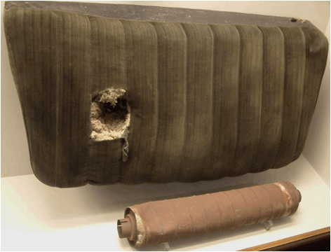 floorboards. It bounced off the car's muffler & stopped in a seat