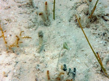 algae (some appear (?) to be Batophora) on aragonitic sandy substrate in