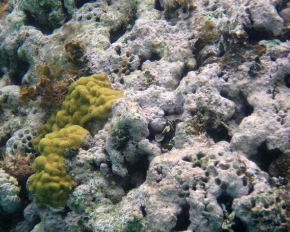southwestern San Salvador Island. Porolithon is a pinkish to