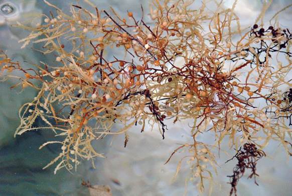 Sargassum natans is a megaplanktonic brown alga that stays suspended in the