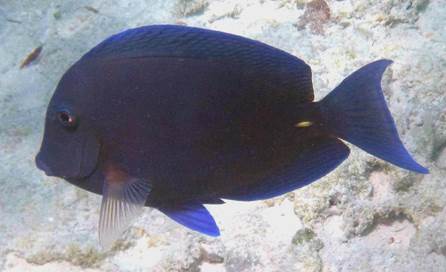 blue tangs (Vertebrata, Actinopterygii, Perciformes, Acanthuridae). Blue