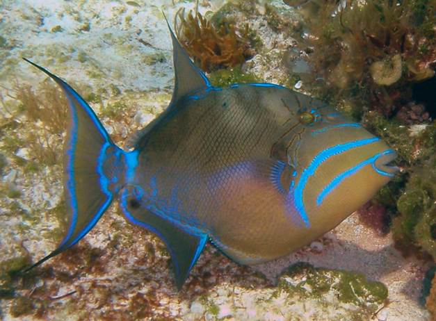 Balistes vetula Linnaeus, 1758 (above & below) - queen