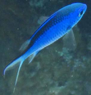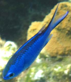 Chromis cyanea Poey, 1860 (above & below) - blue chromis