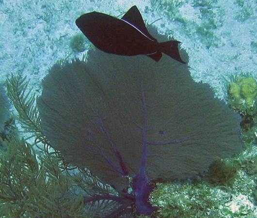 Tetraodontiformes, Balistidae) over a common seafan, Gorgonia ventalina