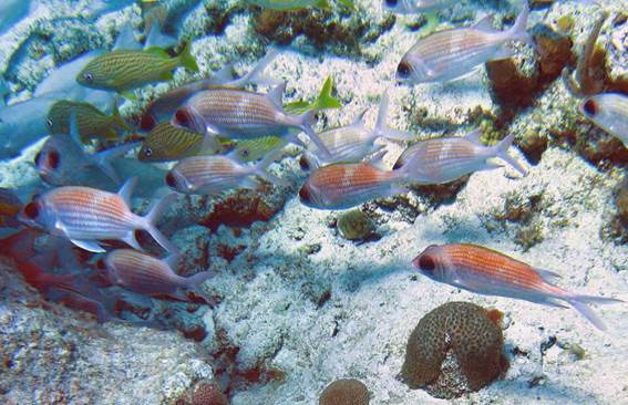 (Desmarest, 1823) - squirrelfish (reddish & silvery with large eyes) and