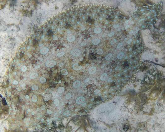 Bothus lunatus (Linnaeus, 1758) (above & below) - peacock