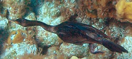 & below) (Vertebrata, Aves, Pelecaniformes, Phalacrocoracidae) diving at