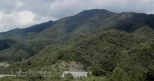 Korea, along Highway 55, we pass by the beautiful forested mountains of