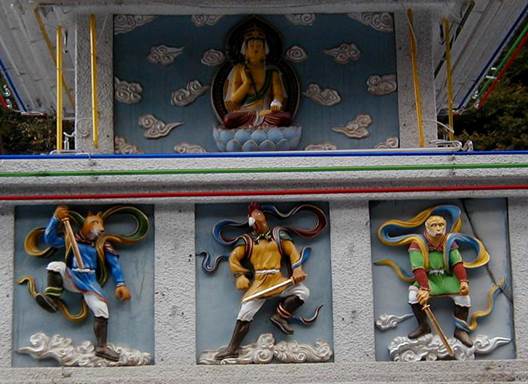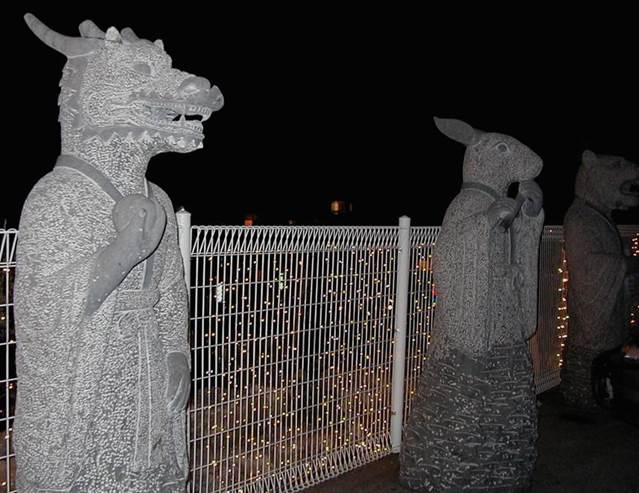 carved statues of the Korean zodiac symbols. They are carved from rock -