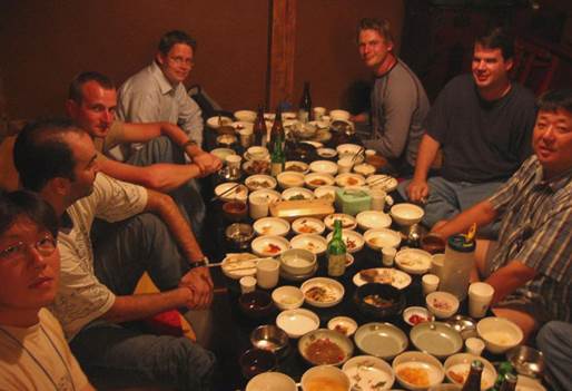 soon as dinner started. Sojo is a strong, clear Korean liquor - it's very