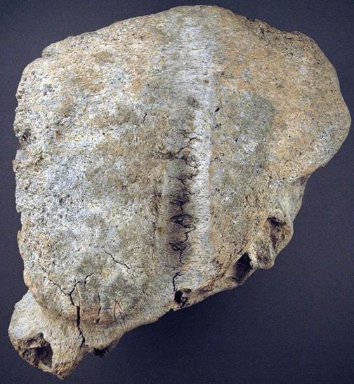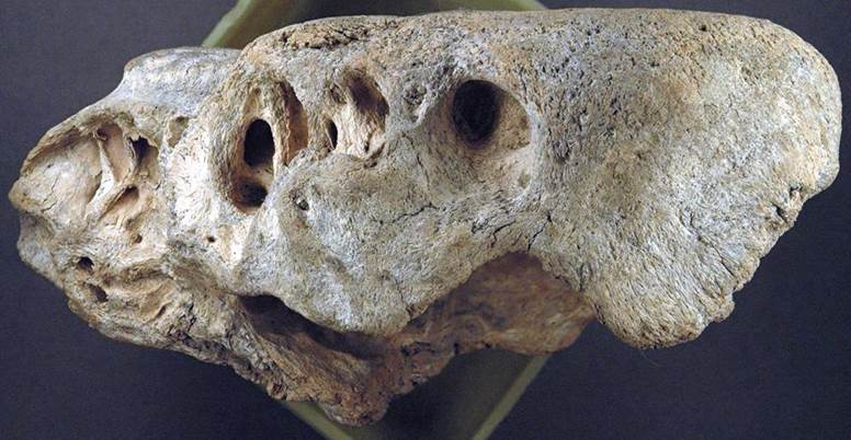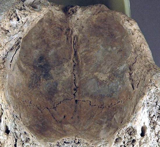 the two horns (not preserved here). Note the very thick skull top.