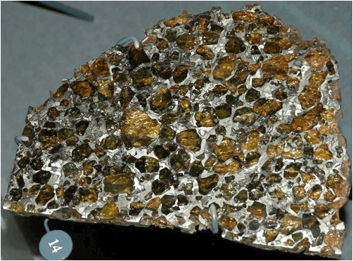 Pallasite - cut & polished slice of the Esquel Meteorite. Public
