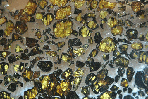 slices show that the olivine component is transparent. Pallasites appear