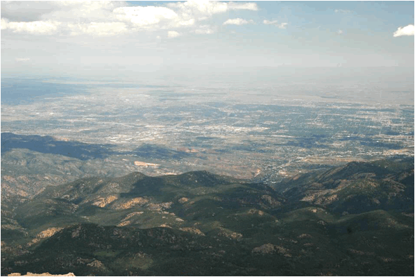 View from Pikes Peak summit (looking ~E toward the Great Plains & Colorado