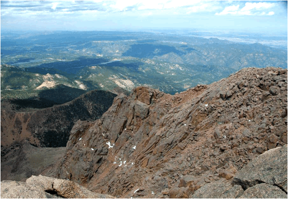 Eastern side of summit of Pikes Peak (looking ~SSW) & granites of the Pikes Peak