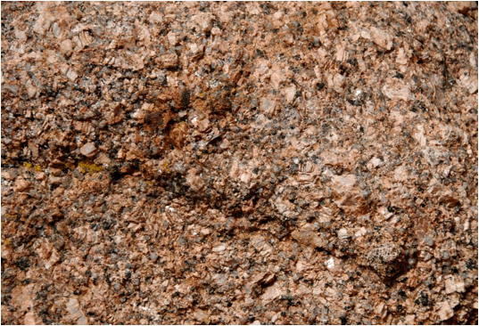 porphyritic. It is dominated by K-feldspar, quartz, and biotite mica