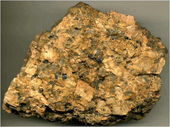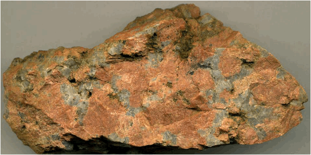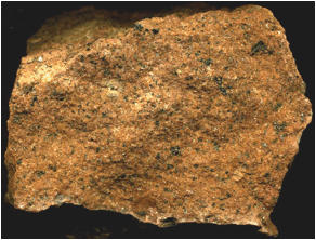 coarsely-crystalline and porphyritic. It is dominated by K-feldspar,
