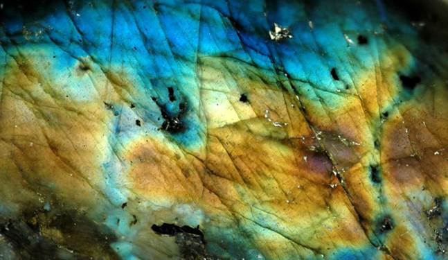 Spectrolite (field of view ~3.4 cm across) - polished surface of gem-quality