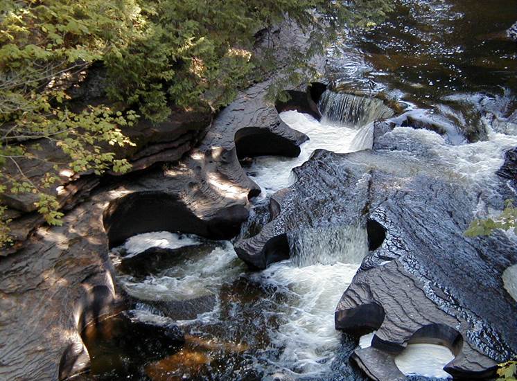 lower stretches of the Presque Isle River have riverbank exposures of upper