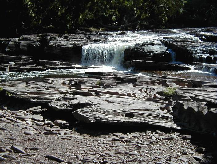 This waterfalls occurs at the contact between the Nonesuch Shale (below)