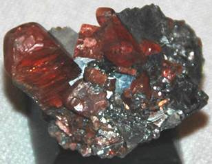 Rhodonite (red) - nice cluster of rhodonite crystals on gray galena (PbS - lead
