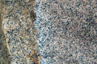 granite adjacent to a joint (fracture) that acted as a conduit for