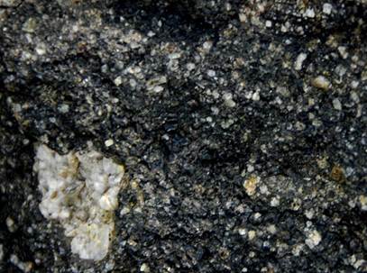 close-up outcrop photo below) are Oligocene-aged volcanics. The rock is
