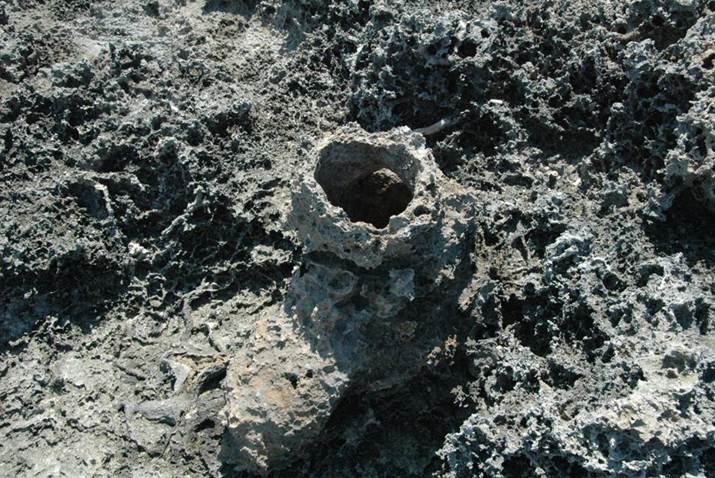 this solution tube projecting above the surrounding rocky surface. Note