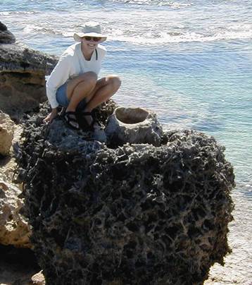 The rocks surrounding the filled solution pit are eolian aragonitic calcarenite