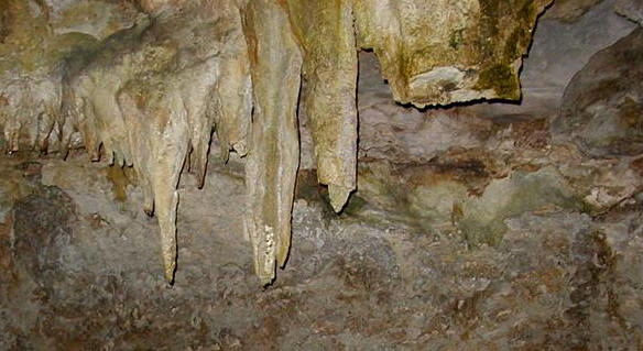 stalactites (dripstone speleothem), composed of travertine, near the bottom of