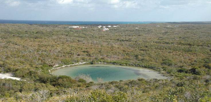 Pain Pond, northeastern San Salvador Island. Rainwater doesn’t run off into