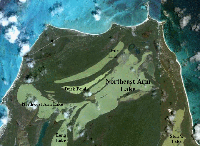 medium-sized lake is separated from Northeast Arm Lake (= part of San Salvador