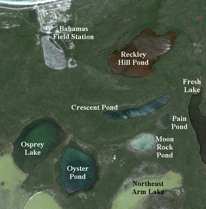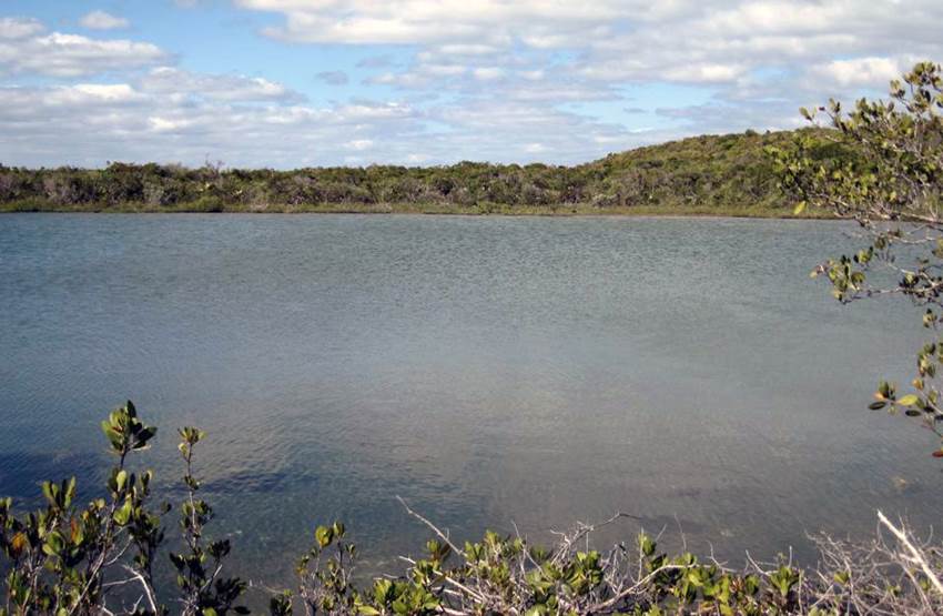 to ENE-trending, inland lake in northeastern San Salvador Island occurs in a